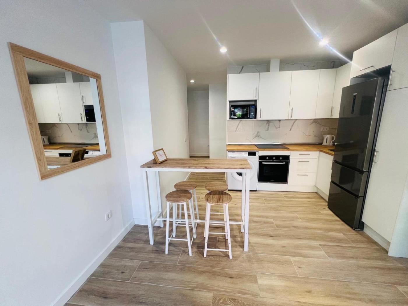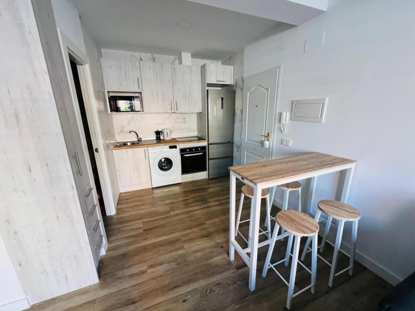 Apartamento Estudio. This air-conditioned apartment comes with 1 living room, 1 separate bedroom and 1 bathroom with a shower. Meals can be prepared in the kitchen, which features a refrigerator, kitchenware, a microwave and a toaster. The apartment has parquet floors, a seating area with a flat-screen TV with streaming services, a washing machine, a tea and coffee maker, as well as a dining area. The unit has 2 beds.