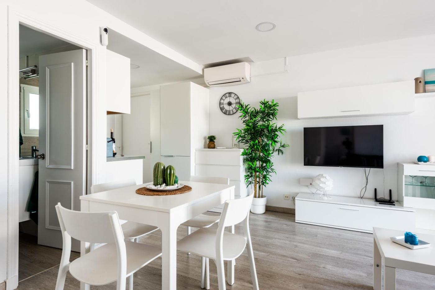 Apartamento con terraza. Featuring a private entrance, this air-conditioned apartment comprises 1 living room, 1 separate bedroom and 1 bathroom with a shower and a hairdryer. The well-equipped kitchen features a stovetop, a refrigerator, a dishwasher and kitchenware. This apartment has a washing machine, a tea and coffee maker, a flat-screen TV and a terrace. The unit offers 2 beds.