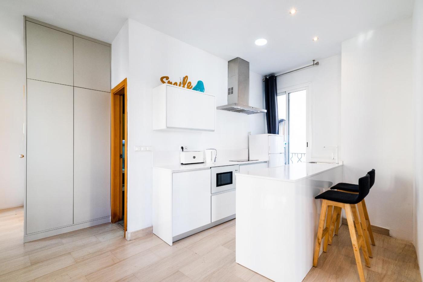 Este apartamento con aire acondicionado se compone de 2 dormitorios independientes, una sala de estar, una cocina totalmente equipada con nevera y lavavajillas, y 1 baño. Hay toallas y ropa de cama en el apartamento.