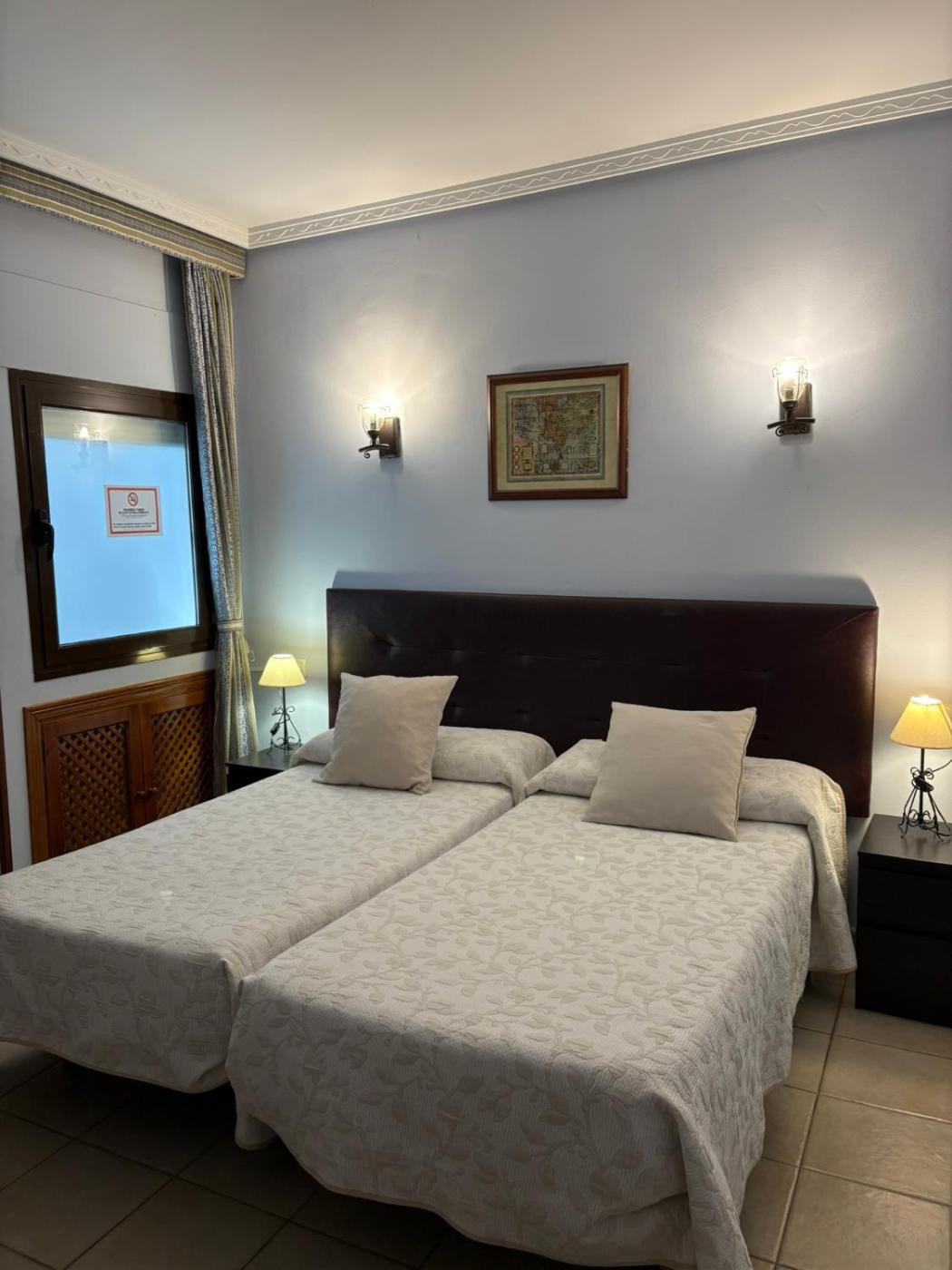 Habitación Doble - 1 o 2 camas. Esta habitación cuenta con aire acondicionado, cama doble o 2 camas individuales, TV, mesitas de noche y baño privado con ducha y secador de pelo. Algunas habitaciones tienen ventana con vistas a un patio interior. El tipo de cama está disponible bajo petición y sujeto a disponibilidad en el momento de realizar el registro de entrada. ;