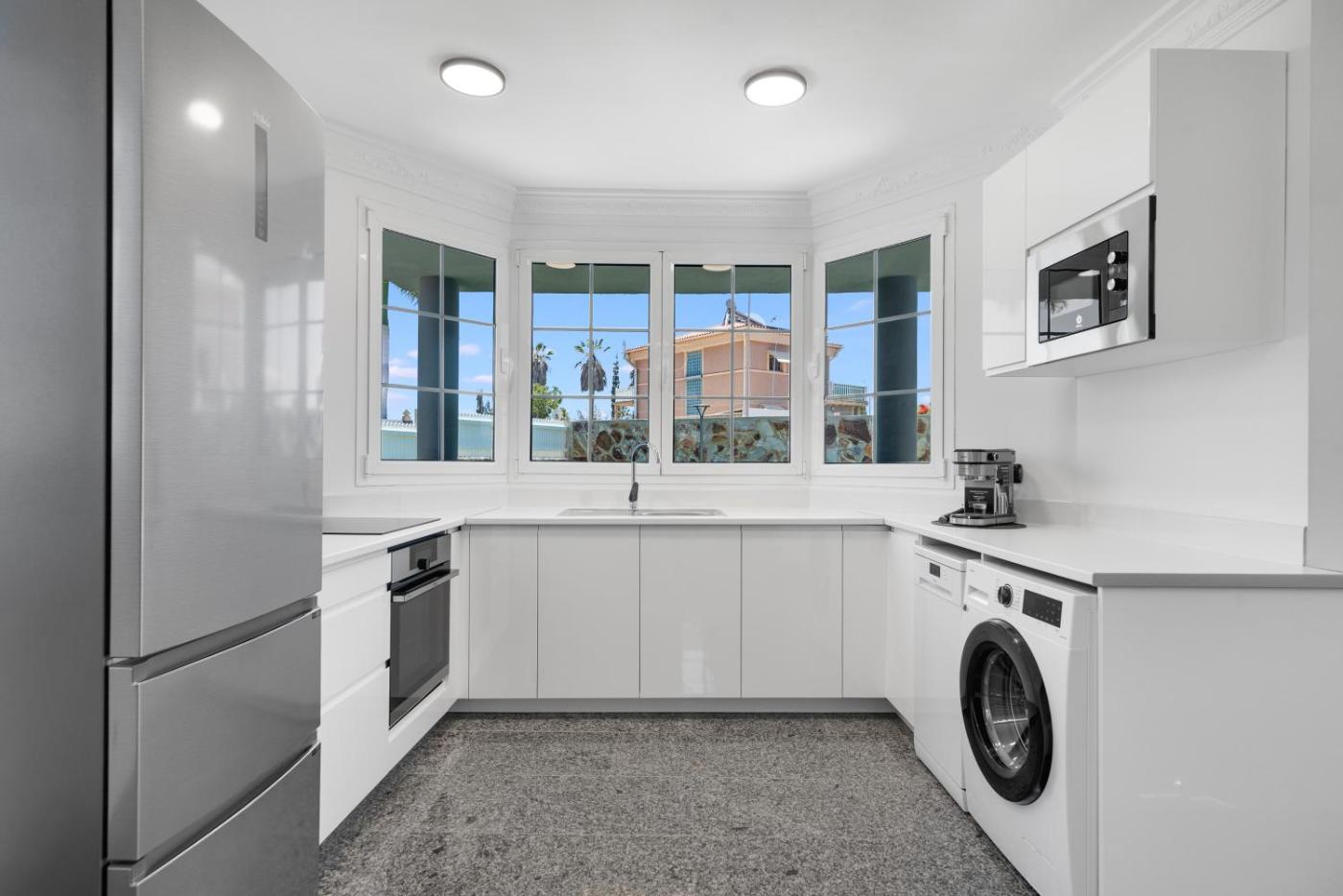 La villa dispone de 4 dormitorios, 2 baños, ropa de cama, toallas, TV de pantalla plana, zona de comedor, cocina totalmente equipada y terraza con vistas a la piscina.