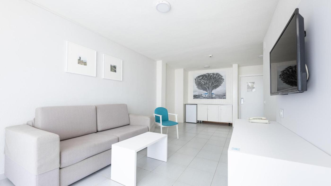 Las habitaciones del Hotel Blue Sea Lagos de Cesar cuentan con aire acondicionado, zona de estar independiente con sofá cama y balcón privado.
