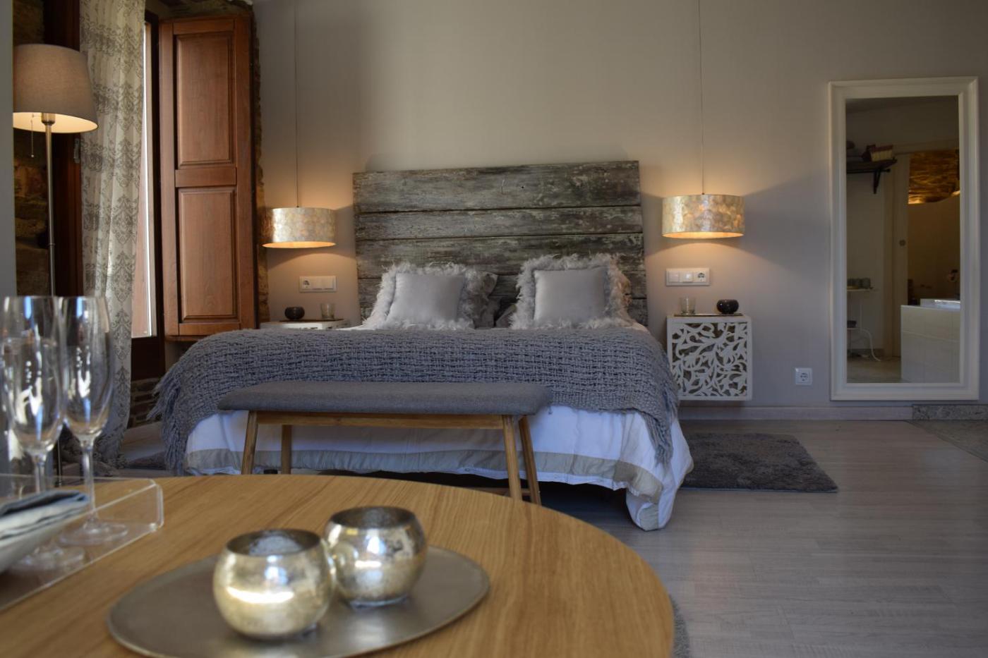 Suite con bañera de hidromasaje. This suites standout features are the hot tub and fireplace. Featuring a private entrance, this suite also comprises 1 bedroom, a seating area and 1 bathroom with a bath and a hairdryer. The fully equipped kitchen features a stovetop, a refrigerator, kitchenware and a microwave. The suite provides soundproof walls, a tea and coffee maker, a dining area, a wardrobe and a flat-screen TV. The unit offers 1 bed.