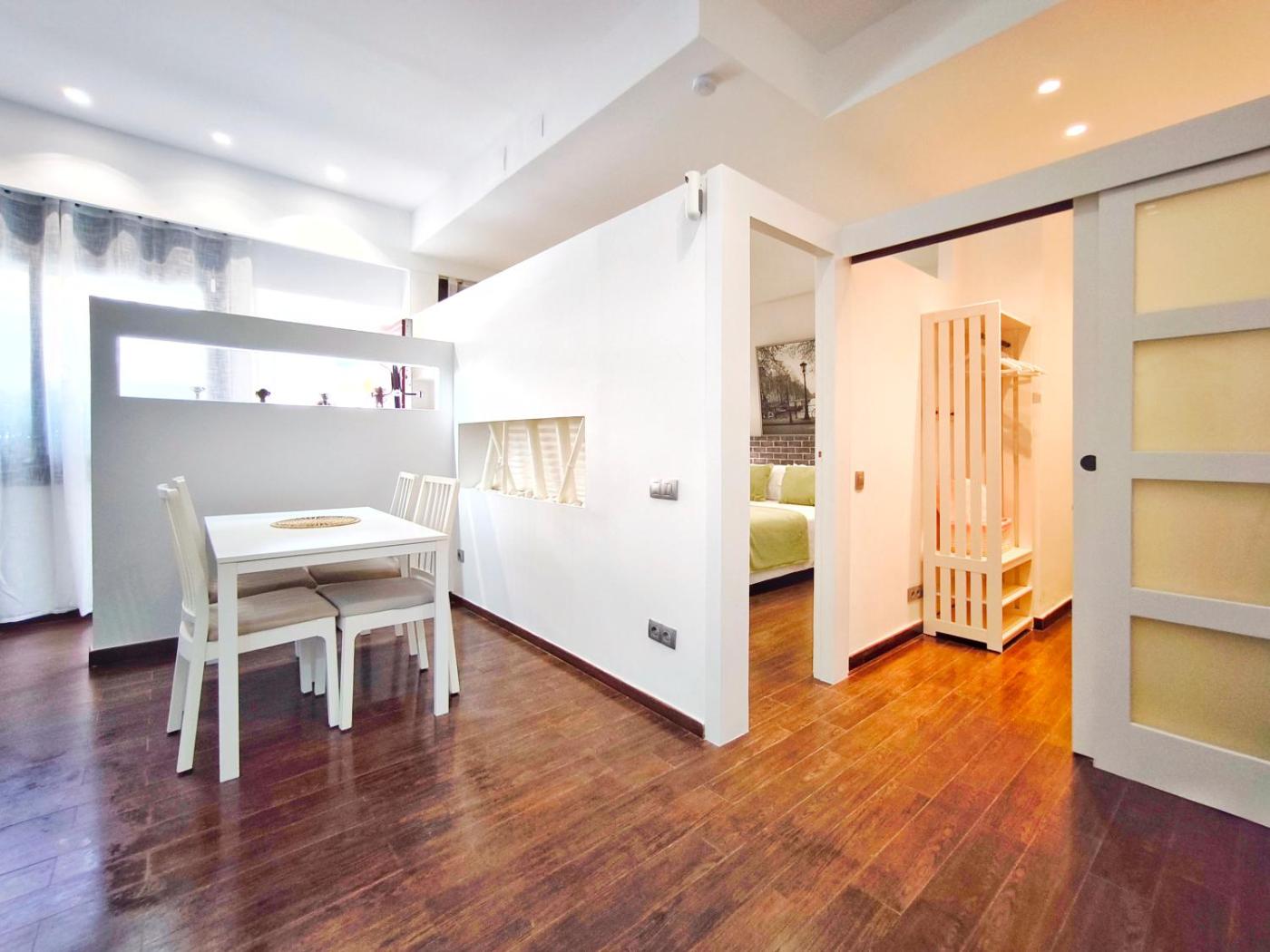 El apartamento cuenta con 1 dormitorio independiente e incluye cocina con nevera, horno y zona de comedor.