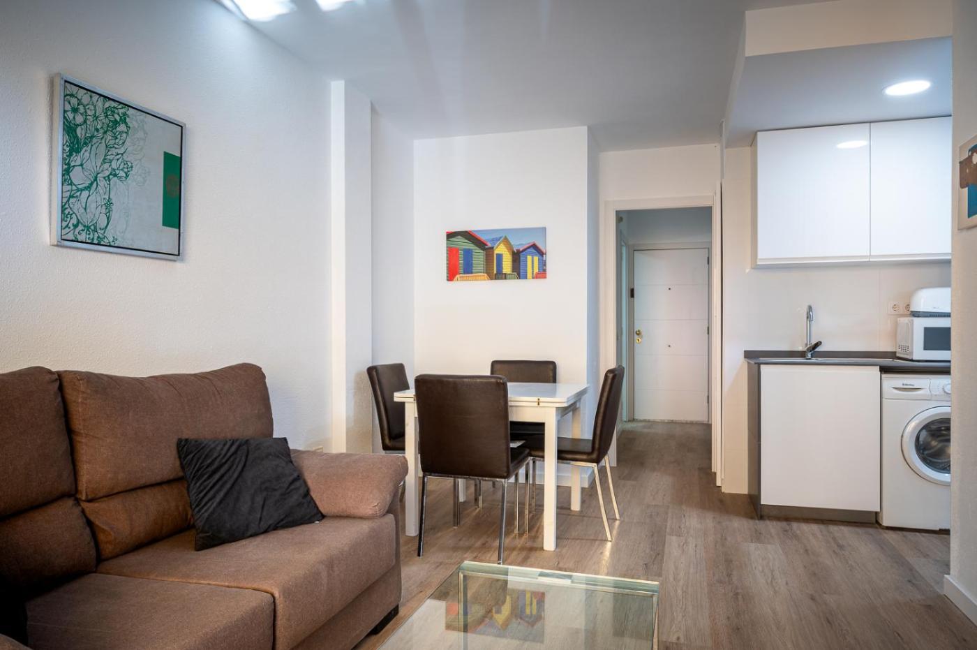 Apartamento de 2 dormitorios. The air-conditioned apartment has 2 bedrooms and 1 bathroom with a bath and a bidet. The apartments kitchen, which features a refrigerator and kitchenware, is available for cooking and storing food. Boasting a terrace with a quiet street view, this apartment also features a washing machine and a TV. The unit has 2 beds.
