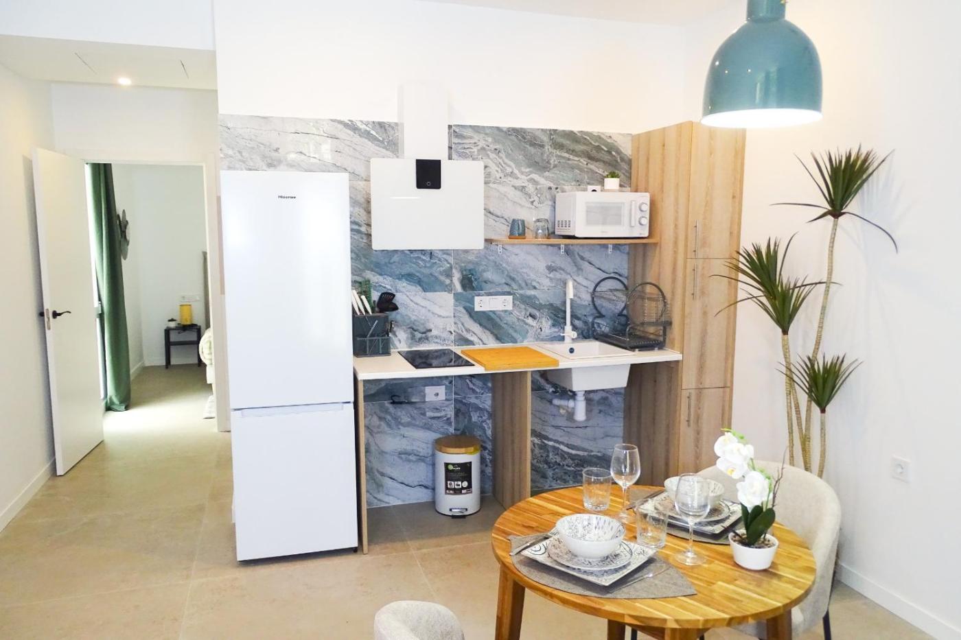 Estudio con 1 cama grande. The apartment offers air conditioning, a tea and coffee maker, as well as a private bathroom boasting a shower and a hairdryer. A kitchen fitted with a refrigerator, kitchenware and a microwave is available for cooking and storing food. This apartment features heating and a TV. ;